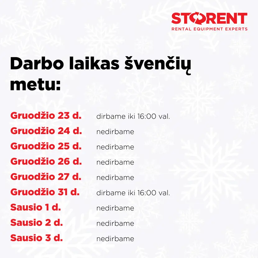 <figure class="image"><img style="aspect-ratio:830/830;" src="https://images.storent.com/pw-public/LT/cms/STO-darba-laiks-1080x1080-lt_xl.webp" width="830" height="830"></figure><p style="text-align:center;">Mieli klientai, prašome atkreipti dėmesį į darbo laiko pakeitimus švenčių metu!</p>